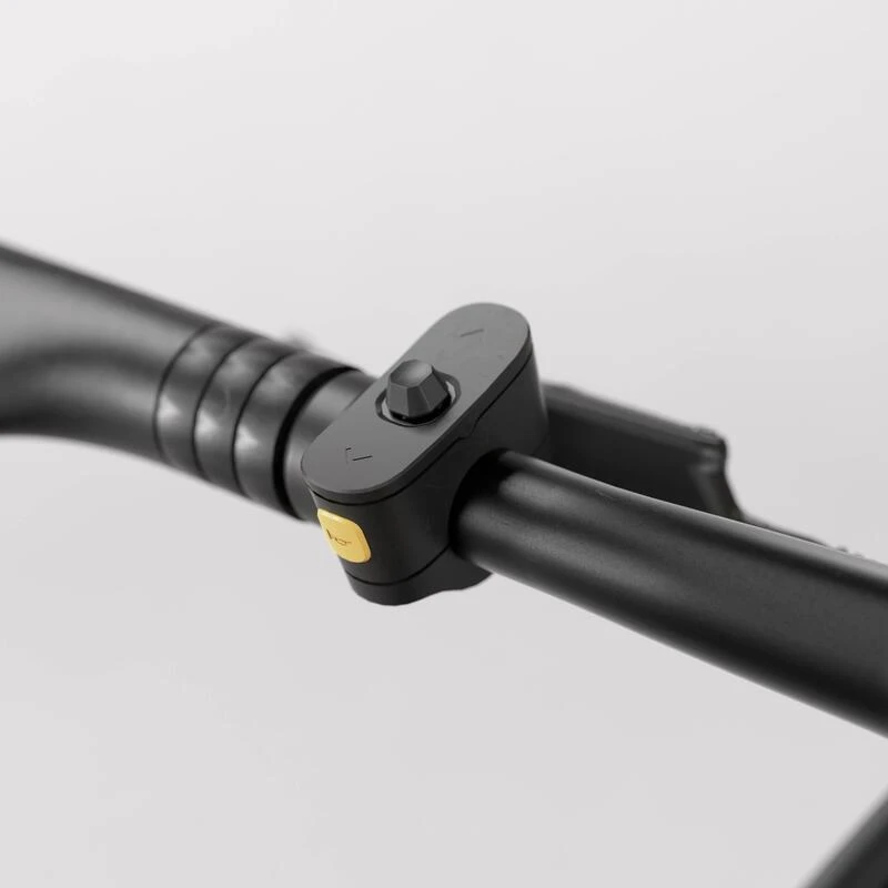 La commande au cintre spécialement développée pour ce vélo se pilote ergonomiquement avec le pouce sans lâcher la main du guidon, même avec des gants.