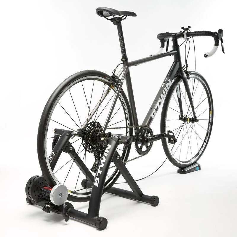 Lorsque vous faites du home trainer, la roue arrière de votre vélo est bien stabilisée et légèrement rehaussée.