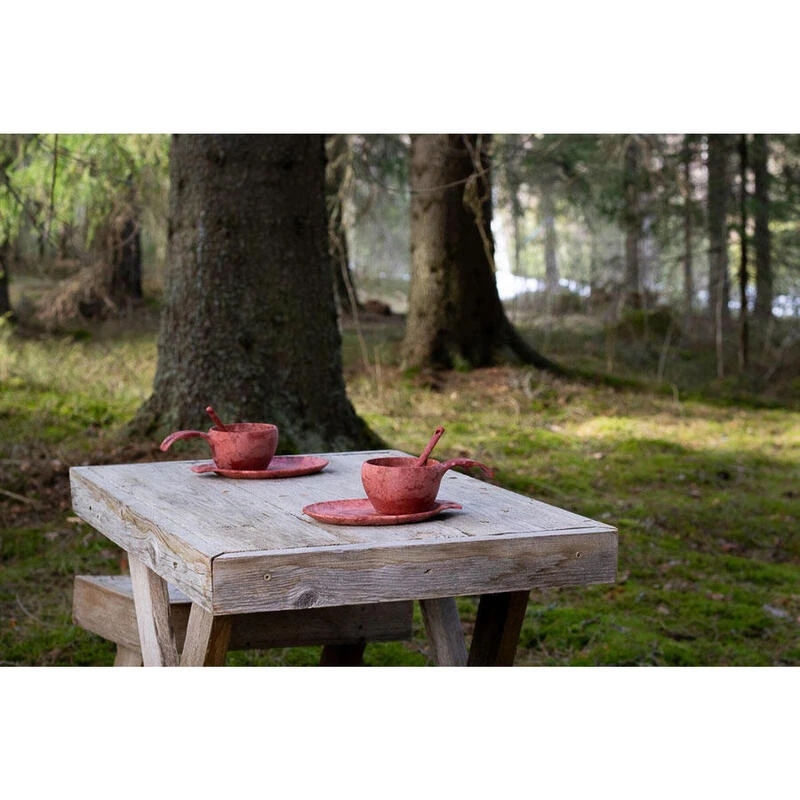 Mok, cuillère et planche faites à partir de bois recyclé avec de la résine artistique. Tous emballés dans une boîte-cadeau.