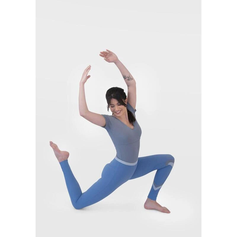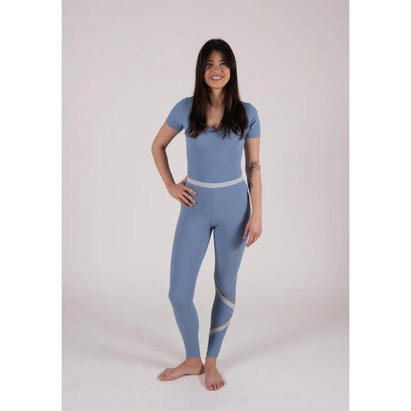 Ce legging Bonny bleu ciel casse les codes ! Ses deux lignes graphiques grises lui donne un look unique. Il est parfait pour vos séances de sport, yoga ou fitness.