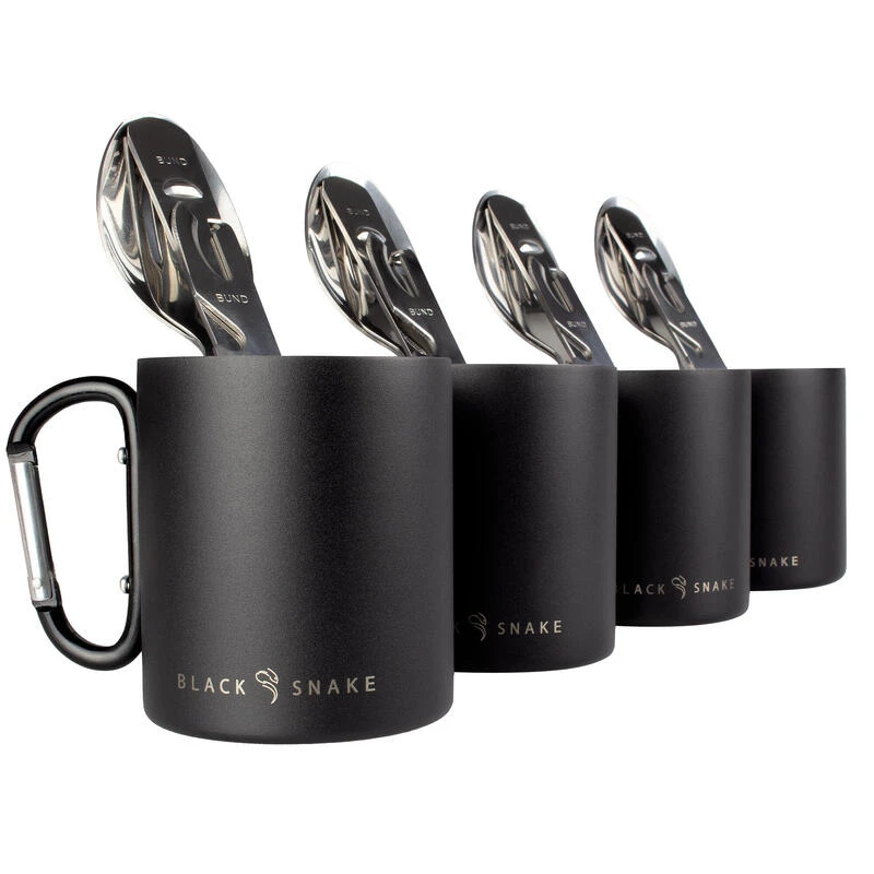 · 4 pièces de couverts par set: fourchette, couteau, cuillère, ouvre-bouteille & ouvre-boîte