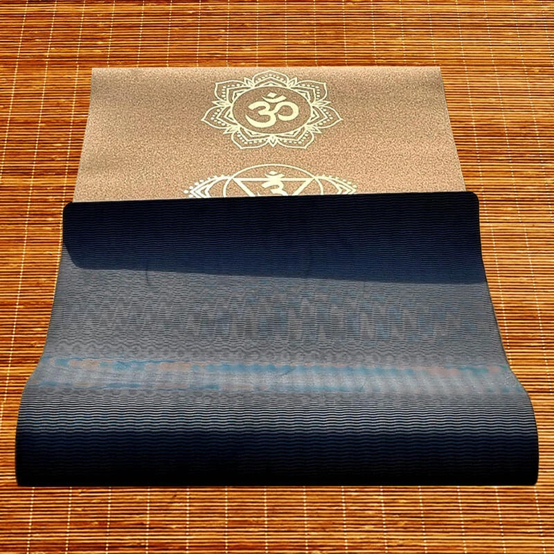Tapis de yoga et Pilates nouvelle génération 3 plis thermocollés, très bonne tenue et stabilité. Epais, confortable, antidérapant, pour tous les yogas et Pilates – 7 chakras Sanskrit Or
