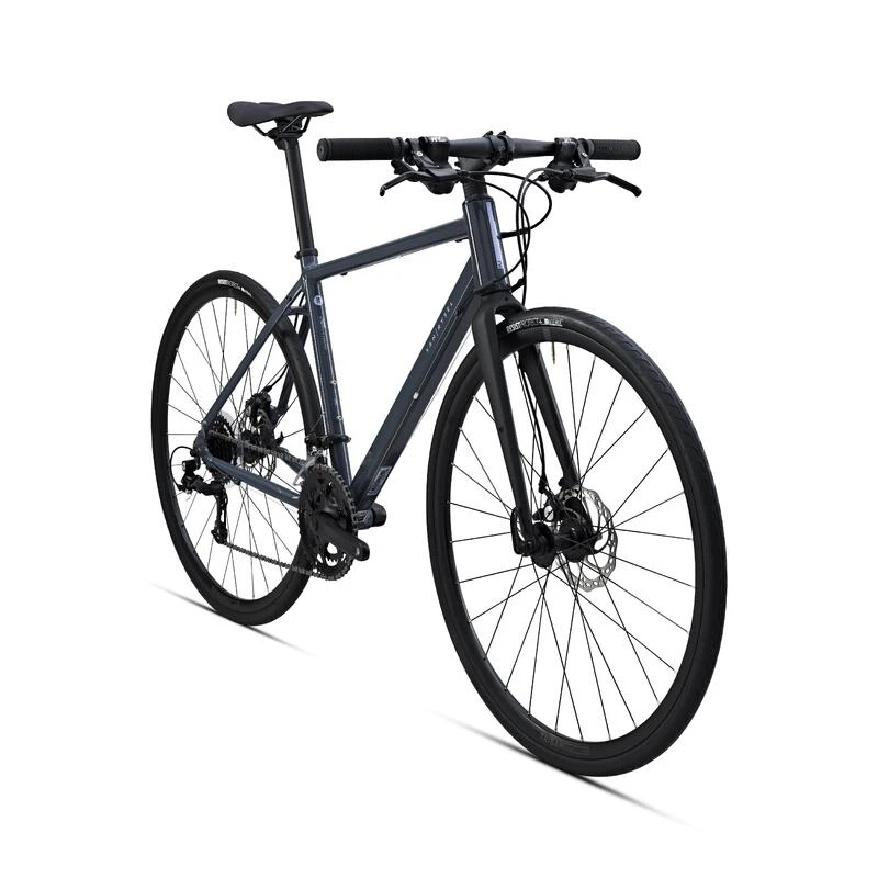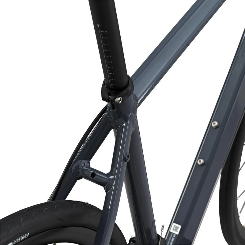 La géométrie du cadre vous permettra de démarrer la pratique avec un maximum de confort. En effet la douille de direction étant plus haute et le top tube plus court qu’un cadre route classique, vous serez moins penché sur votre vélo et aurez ainsi une position plus droite.