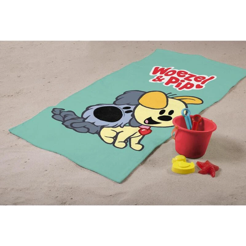 Charmant à la plage avec les amis Woezel & Pip. Cette jolie serviette de plage est un véritable accroche-regard !